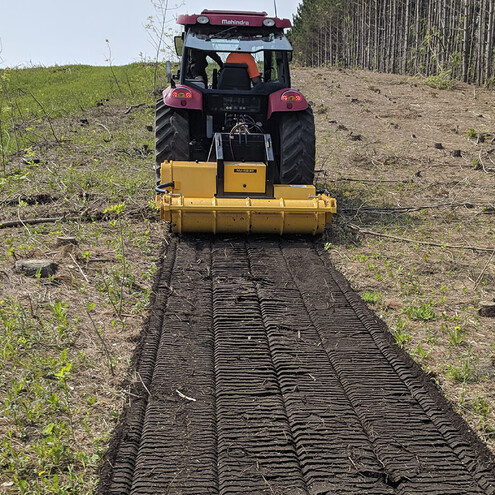 Well suited for forestry clearing, farmland clearing, soil reclamation, crushing stumps, clearing construction and development sites, clearing and clean up after harvest, and other demanding works. The MeriCrusher MJS PTO-driven mulcher has a 10" (250mm) maximum subsoil working depth.