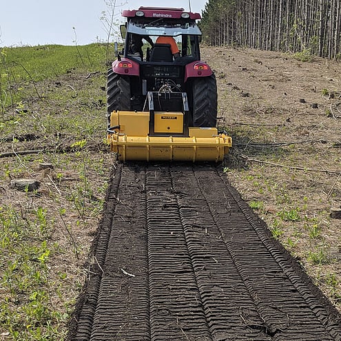 Well suited for forestry clearing, farmland clearing, soil reclamation, crushing stumps, clearing construction and development sites, clearing and clean up after harvest, and other demanding works. The MeriCrusher MJS PTO-driven mulcher has a 10" (250mm) maximum subsoil working depth.